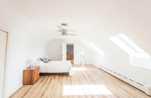 A spacious, newly renovated home set on over 6 acres. Bright, airy, and calm, the house offers three levels for groups to spend time together while also spreading out.