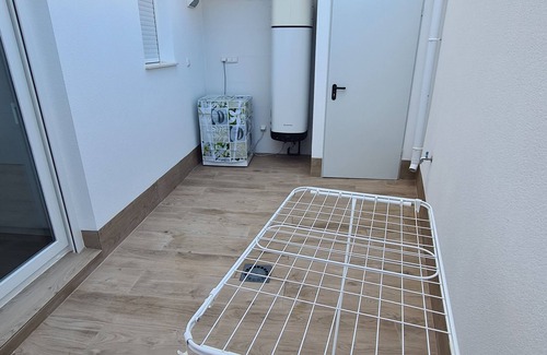 The kitchen is equipped with an oven, a stovetop, and a refrigerator, as well as a coffee maker, a microwave, and cookware. Bathroom amenities include towels and toilet paper. And because there's a washer and dryer, you can go a bit lighter on your packing. Other amenities include bed sheets, an ironing board, housekeeping, and air conditioning.