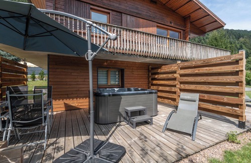 Relax in the hot tub or sip a drink in the garden of this 484-sq-ft chalet, which also offers a BBQ grill. As for the great indoors, you can come inside and enjoy the WiFi and TV.