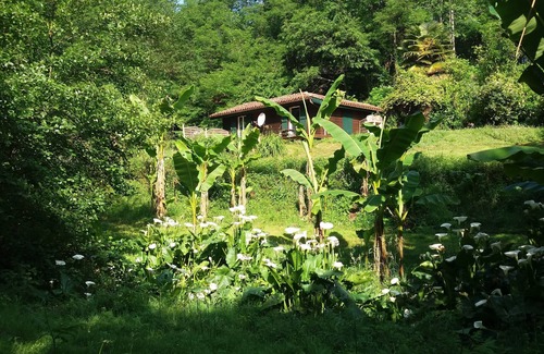 This garden, bordered by a small stream is embellished by many plants: banana trees, arums, lilies, hydrangeas, etc ...
