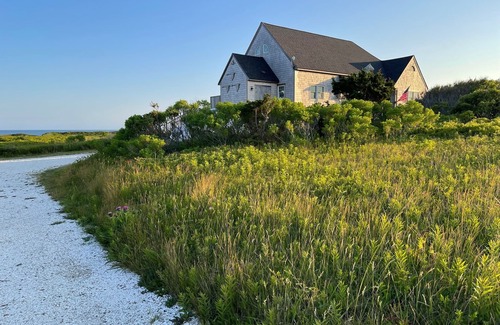 Situated out a 2 mile dirt road, this is the rustic Nantucket you're looking for. Just steps from the beach, this two bedroom 1.5 bath vacation house is relaxation at its best. High ceilings in the living room and kitchen, great ocean views, new deck and outdoor shower. Wonderfully simple. Excellent fishing, swimming, body surfing, surfing, and boogie boarding. Roku TV and wireless internet provided. A peaceful retreat.