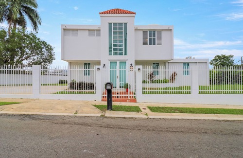 Consider this estate your home away from home while you visit Puerto Rico. This welcoming property boasts (2) two Master suites on each floor and 2 more bedrooms, including a king bed, bunk bed, and 2 queen beds. With 3 and half bathrooms featuring amenities like a bidet and open shower, guests will feel right at home. Enjoy the additional living room space with a queen size sofa bed for extra comfort. Experience what San Juan, Puerto Rico has to offer with a stay at our terrific estate. The house is closet to everything you need malls, supermarkets, restaurants as well as the Luis Munoz Marin International Airport. The property is in a gated community and it has a beautiful private in ground pool with a terrace to enjoy a great BBQ day. Also, the house is equipped with a solar panel and battery back up system and 500 gallons water reserve for your peace on mind.