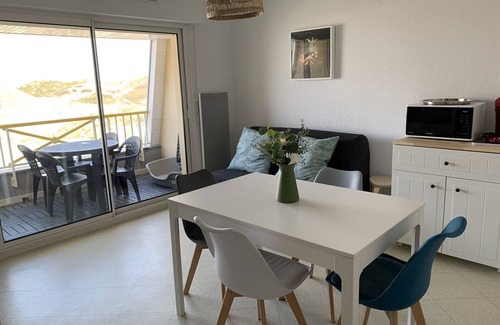 Enjoy a pleasant stay in our beautiful F2 apartment, located on the 4th floor of a residence with elevator, in the immediate vicinity of the beach and shops, as well as the Fort Mahon Plage nautical base.