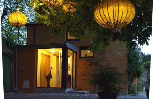 Rough plastered white walls and well worn wooden columns remind us of a more utilitarian time. The house enjoys sustainable under floor heating on the ground floor, but there is also a wood burning stove for cosiness.