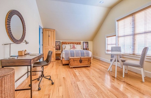 Guests will have access to the entire carriage house and patio outside, except for the artist studio located at the back of the home. The artist studio will remain vacant, and is not rented or setup as a rentable space.