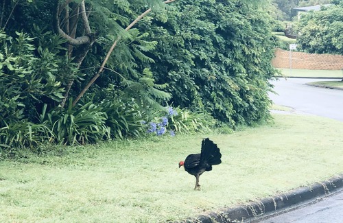 High ceilings and fan in bedroom looking into tropical garden. Nearby clubs and free shuttle to Mets on kings and Caloundra RSL. Mountain Bike riding tracks in Ben Bennet National Park round the corner . Local bush turkeys wander through the garden. Pets will be permitted on the property and must have owners attend to them at all times while they are on the property.There is a $50 charge for a pet per stay to cover any cleaning of hair. WE require pets not to be on the furniture or bedding and they will need their own dedicated bedding which the guest will supply.