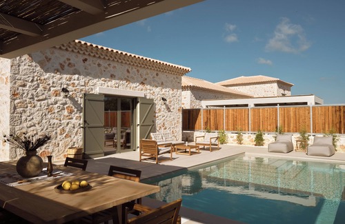 Nestled among a hundred-year-old olive grove and bathed in sunlight, this estate offers a unique blend of rustic charm and modern comfort. Built with natural stone and wood, each house honours the island’s architectural heritage while providing a peaceful retreat.
