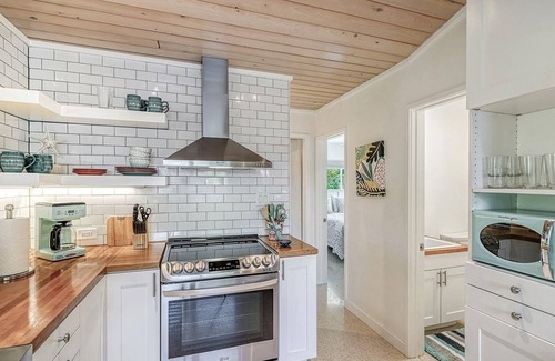 The cool and calming coastal feel of this mid-century modern home will set the scene for your next relaxing vacation here in beautiful Sarasota. Newly renovated with plenty of upscale finishes, you'll feel as though you have just stepped into a luxurious oasis. Feel the quintessential Florida experience by opening the French doors to the fully fenced backyard with paved patio and entertaining area. Our home is perfectly located just minutes to Sapphire Shores, the SRQ Airport, Ringling Museum, Lido Beach and St. Armands Circle, and downtown Sarasota.