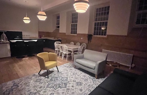 Stay in a beautifully converted church hall in the heart of rural Devon, right on the scenic Two Moors Way. This unique, listed building sleeps up to 10, with two spacious bedrooms and a fun upstairs corridor with 6 custom bunk beds.