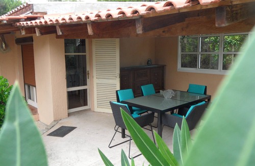 Convenient, cosy, and comfortable detached house F3 (85 sq. m), fenced garden with trees and flowers, sea view, private parking, large covered terrace, living room, dining room, TV with sofa bed for 2 (160 cm), equipped American kitchen, large bedroom with double bed (180 cm), and a large bedroom with three 90 cm beds (cot available) bathroom, toilet, bathtub and separate toilet, outdoor shower, bed sheets, towels and small towels provided on-site. Lovely beaches and coves (100 m), restaurant, supermarket , pharmacy, boats and kayak rental, diving, tennis, and launching close to Olmeta Beach (500 m), hiking, biking, downhill mountain bike, enduro courses, hiking trails, horseback riding (2 km) Porticcio Seaside Resort (10 km), cinema, discotheque and entertainment, sea scooter, sailing, Thalasso Centre and fitness gym, open-air day care centre, day-nursery, Ajaccio Imperial City and airport at 20 km.