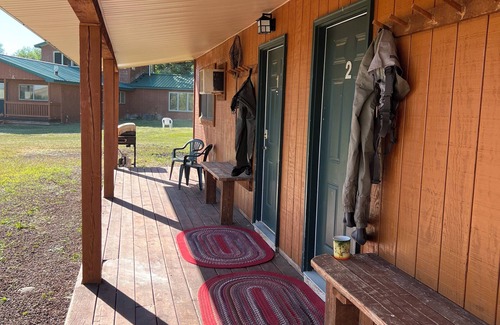 Come stay, relax and enjoy our functional and comfy cottages. Each has their own fully-equipped kitchenette, bathroom, and room for sleeping three people. The large front porch on the cottages allows for a great spot to store gear, eat meals, and sit on the benches while you tell fish stories. The Three Mile Lodge is minutes to river access and also offers multiple units if you are interested in larger groups or just want to spread out a bit. Pets are welcome and will enjoy the grounds just as much as their owners!