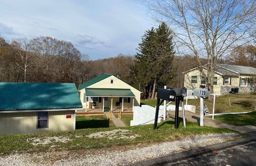 This is the upstairs of a newly renovated house on 3 acres of yard and woods. Nature trail, creek and waterfall with lots of deer. It’s cozy, comfy and convenient. Five minute drive to downtown Charleston and interstates 77, 79 & 64. The neighborhood is quiet and safe. Great country porch and rear deck overlooking the property. New bedding and two 50” smart TVs keep you connected while kicking back in total comfort by the fire. The small apartment below has its own private, quiet entrance.