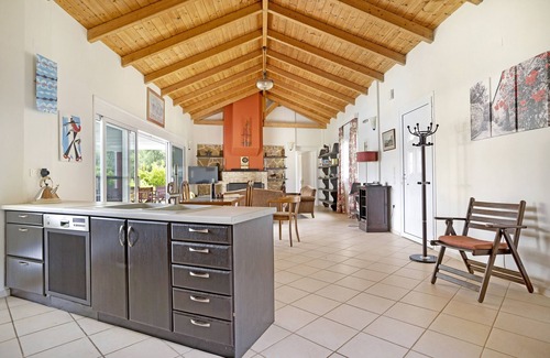 The villa is sorrounded by oak trees and that gives the feeling of privacy and calmness. The land around the villa is full of trees and plants which each one is having a distreect board of valuable information, like a botanic garden. Wonderful space with a big pool that makes you relax and enjoy the nature. In a safe distance from the villa is the organic chicken coop that gives us delicious eggs.Traditional mornings with the sound of a rooster. Our organic garden also gives delicious seasonal fruits and vegetables