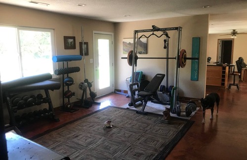 Country paradise! Large gated and well fenced area for pets with lawns. Dog sitting available. Beautiful views. Hot tub, Infa-red sauna, Large Sun Deck with table and BBQ, Fresh eggs, Gardens and fresh fruit from an orchard. Large kitchen fully stocked. Gym for workouts. 10 Minute drive to event parking in Marina. Clean bedrooms, memory foam beds and lot's of space. Good storage for equipment. Local Knowledge and advice available.