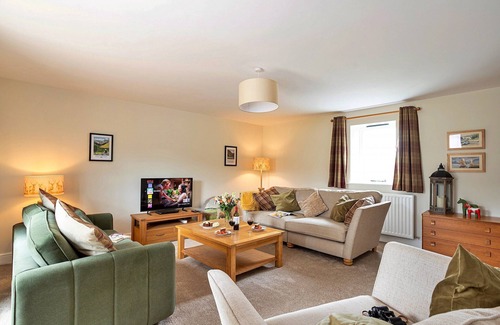 Nestled in the scenic Cumbrian countryside near Rosley and Wigton, this pet-friendly semi-detached retreat is perfect for families and friends seeking comfort and rustic charm. Surrounded by lush greenery, the garden and patio offer a peaceful space for al fresco dining or relaxing with your furry companions after a day exploring. Inside, the open-plan living area features cozy sofas and a log burner, creating a warm, inviting atmosphere, ideal for unwinding with pets by your side. A separate family room with a Smart TV and Wi-Fi provides extra space for relaxation, ensuring everyone feels at home. The fully equipped modern kitchen makes meal prep easy, with an adjacent dining area and breakfast bar for sharing meals and conversations. The home sleeps up to six across three bedrooms: a main king-size with ensuite shower, two versatile bedrooms with super-king or double beds (which can be made into singles), and a sofa bed in the family room for additional guests. A cot is also available for young children. The surrounding countryside and nearby trails are perfect for long walks with your dogs, including routes to local pubs like The Royal Oak at West Curthwaite. Located near the Lake District and Solway Coast, this home is an excellent base for outdoor adventures and exploring charming villages and historic sites. Parking for three cars, secure bike storage, and outdoor electrical sockets are provided. Please note, the property is in a friendly neighborhood and not suitable for stag, hen, or large parties. A security deposit of £300 applies, and prior confirmation is required. For more details and bookings, contact Finest Retreats.