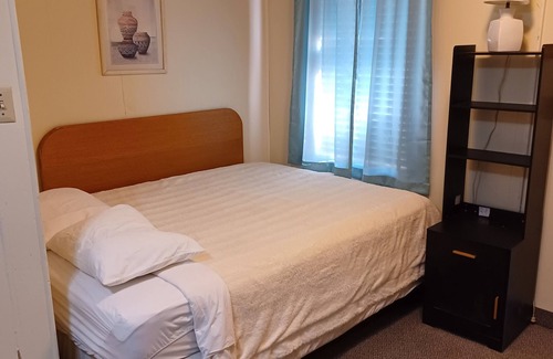 Room 5 is equipped with one queen bed, mini fridge, microwave, coffee maker, TV, and bathroom. It is perfect for one to two guests.