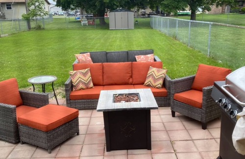 Located in Ashwaubenon, enjoy what this 2-bedroom duplex has to offer. With 2 queen beds and a cozy living room with a reclining cozy couch, guests can relax and unwind after a day of exploring. The bathroom features a bathtub and a hairdryer for added convenience. Also, enjoy sitting outside on the patio having a fire and grilling out! Our serene and enjoyable property will help you feel at home while you're traveling through Green Bay!