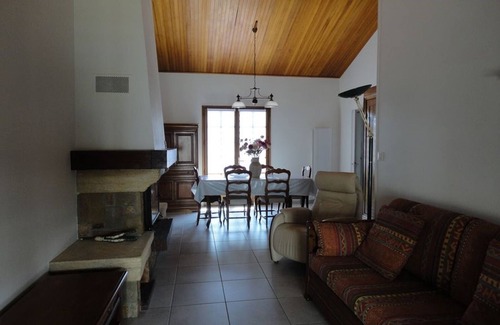 - LIVING ROOM: table - 6 chairs - flat screen TV - seated bench - armchair - coffee table - 2 cupboards - halogen - out of service fireplace (decorative)