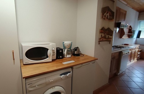 Kitchenette: top fridge, washing machine, dishwasher, microwave, 4 hotplates, extractor hood, coffee maker, kettle, toaster, many accessories.