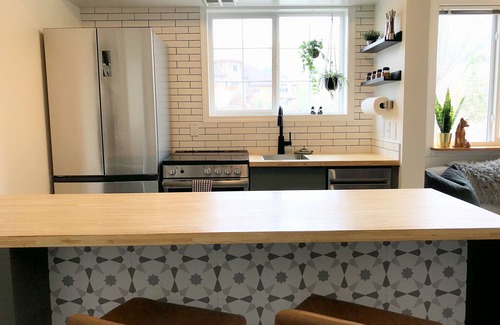 Welcome to our cozy corner unit with stunning mountain views from every window! Our quiet and peaceful retreat is the perfect place to recharge after a day out in the mountains! The suite is newly renovated and furnished, and has been thoughtfully designed with your comfort in mind. Stay connected with dedicated, high speed unlimited wifi, sit back and enjoy a show on a sleek 50" smart TV (Paramount+ included). Take a stroll to nearby restaurants, shops, and downtown Canmore just a few km from the door!
