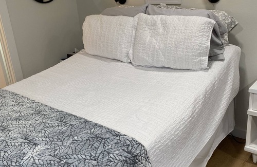 Welcome to our new guest house with its own private entrance. There is a private lighted parking space for guests use only. Make yourself at home with a new adjustable queen bed with remote, a bathroom, kitchenette, TV and a small dining table. There is a pullout twin bed in the loveseat. If you prefer to dine outside; a table and chairs are available in our outdoor courtyard area. We have a new LG window unit AC/Heater with remote; to keep you very comfortable in any season.