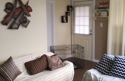 Simple, comfortable 3 bedroom house with character and peace. Open concept living room and kitchen are surprising for a house of this age and make the space great for coming with co-workers or on your own. Pet friendly with crate, fully fenced backyard.