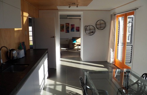 It is a modern kitchen with a fan bake oven by Bosch and a ceramic top by Beko. Enjoy some cooking, working on the granite bench-top or grab some local takeaways from Kings Fishmarket.