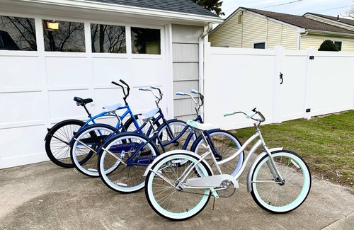House is fully stocked with sheets, towels, full kitchen, dinnerware, games, 4 bicycles, beach chairs, and a cooler! Just bring your toothbrushes and bathing suits!