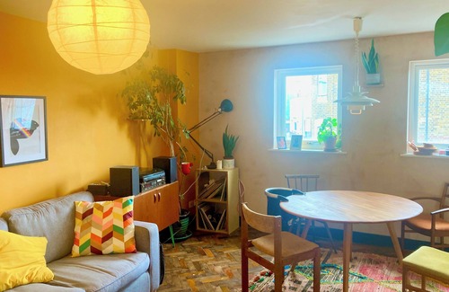 Light and airy 2 bedroom flat 25 minutes to central London. One bedroom has a king sized bed. The second bedroom is a child's one and has a cot that can have its side removed to make into a child's bed. Wooden floors and furniture throughout. Walthamstow is a cool, bustling neighbourhood and there are pubs and restaurants within a few minutes walk. This is my own home but I am often elsewhere. As such it has a homely feel complete with my books, records and fully stocked kitchen for you to use. Although the flat is on a main road double glazing minimises the sound of this.