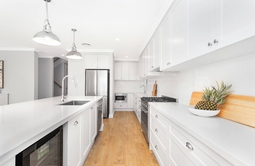 Situated in the peaceful Catherine Hill Bay, our luxurious and spacious Hamptons inspired home offers everything you need for an unforgettable stay. The home is the perfect getaway for families and friends to enjoy, with open plan living and five bedrooms, three master suites, generous balcony overlooking the plunge pool and coastal views.