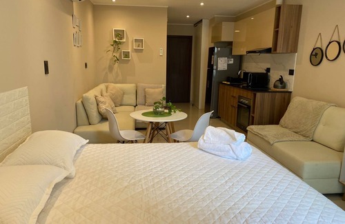 Located in Santa Cruz de la Sierra, enjoy what this fantastic studio has to offer. With 1 queen bed in the cozy bedroom, 1 bathrooms featuring a bidet and shower, and a lovely living room with a murphy bed, guests will feel right at home. Stay connected with WiFi, stay warm with heating, and stay active in the fitness room. We look forward to hosting you at our place.