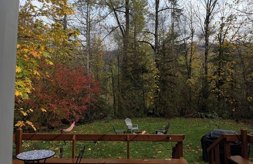 Your cozy cabin in Baring with 2 bedrooms - 1 queen bed and loft room with 2 twin beds. This charming retreat features a living room with a queen air mattress available, perfect for unwinding after a day of exploring. Enjoy the convenience of a washing machine, WiFi, air-conditioning and a woodstove. The bathroom includes a large bathtub. The backyard has great mountain views, a hammock and a fire pit. A short walk to the community access path to the Skykomish River. Just 30 min from Stevens Pass and endless hiking options nearby. Kickback, relax, and enjoy everything the Skykomish Valley and our cabin has to offer.