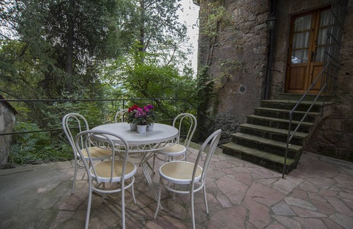 These wonderful apartments are located in a castle in the Lazio region right on the border with Tuscany. The castle dates from the 12th Century and has a pentagonal base, which contains a main tower and two side towers connected by walkways, as well as a drawbridge, one of the 19 still in operation in Italy. The castle towers over Via Cassia and dominates the valley of Paglia, with Monte Amiata in the background. Surrounded by forests and green valleys, this rare example of the medieval fortress survives in its original state and offers charming accommodation and wonderful hospitality where you can enjoy history and culture without sacrificing modern comforts. The castle consists of 7 apartments. Three apartments are in the fortress part of the 14th Century. Although they share a common path through the garden to the pool, each of them is independent and has its own furnished outdoor area. Around the medieval courtyard are the other four apartments, also with a private outdoor area; the swimming pool (12x6 mt, open from mid-May to mid-October) can be reached through an old charming tunnel under the castle. All apartments have a fireplace with wood, for romantic and cozy evenings.