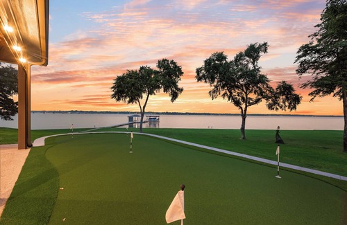 Perfect for football game day. Outdoor Tv in huge comfy courtyard with Oversize fireplace. Luxury Lakefront Retreat on 4.2 Acres with Pool, Hot Tub, Putting Greens, Game Room, Luxury Poker Table, Courtyard & Incredible Sunsets