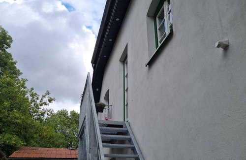 The apartment Hofblick is located on the first floor and offers on 70sqm a living room, a cozy kitchen, a bedroom with double bed and a bedroom with two single beds and a shower room. Wi-Fi is available free of charge. The farm sauna and washer and dryer can be shared. Costs per sauna: 16,00 EURO Costs per washing / drying cycle: 3,00 EUROIm large common garden waiting inviting seats, plenty of space and equipment for playing and a barbecue. Parking is available directly in front of the house.