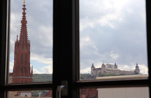 2-room gallery holiday apartment with view of the Festung Marienberg, an open living/dining area including a fitted kitchen, a separate bathroom, a bedroom upstairs, 2 floors, accommodates 2 to a maximum of 6 people, non-smoking, city center, 4th floor, no elevator.
