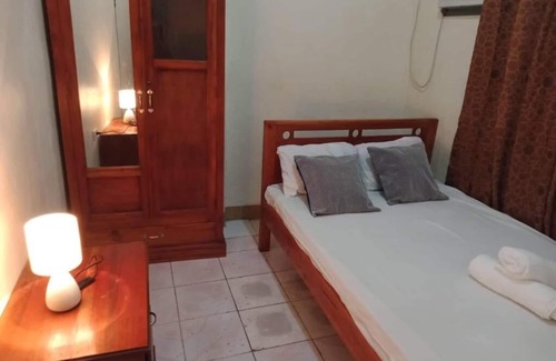 It is a nice bungalow located in a cul-de-sac near the main circumferential road. It has 2 bedrooms and 1 bathroom, as well as a kitchen equipped with most essential kitchen appliances so that the tenants can make their own food. Although there are places to buy food nearby, from mini convenience stores to eateries. It comes with free wireless internet and air-conditioning. Guests can also rent a motorcycle to get around the island for an affordable rate.