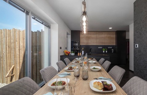 This beautiful house is located in the mountain town of Frýdlant nad Ostravicí – part of Lubno. The accommodation can accommodate 10 people and has 4 separate bedrooms. Watch your favorite movie from the Jacuzzi and enjoy an evening in the private summer cinema overlooking the countryside!