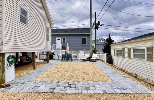 The streets are lined with sand for your shore bungalow experience. When you stay here you are truly staying at the shore with the sand at your doorstep. This is walkable to the beach (minutes away), restaurants and ice cream! You have the beach on one side and the bay on the other! This is section 3 in ocean. Outside you will be provided with a table, chairs, umbrella, and grill plus more! Make some memories at this unique and family-friendly place. Beach passes are not included but available for purchase.