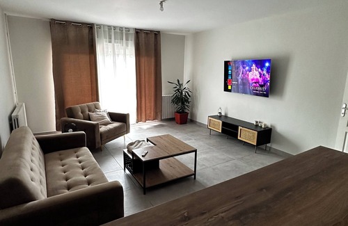 Nestled in Limoges, this 4-bedroom, 2-bathroom vacation home brings it all within your reach. Fans of nature and the outdoors will love being 8 minutes by car from Jardin de l'Eveche and 17 minutes from Lake Saint-Pardoux. Make short work of the 5-minute drive to Zenith de Limoges or the 5-minute drive to L'Aquapolis.