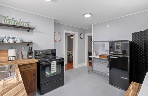 Two bedrooms, living room, newly remodeled kitchen with butcher's block countertops, cozy front porch and a spacious deck as well as a large bonfire area provides relaxing space to unwind, uncork and having good time with family and friends.