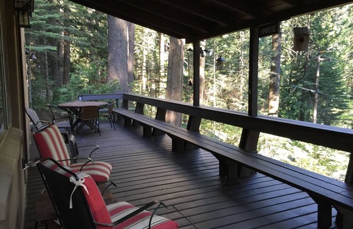Come find your rest at the Grizzly Bear Lodge nestled in the woods of the Sierra National Forest. Enjoy the ambience of high, rustic wood ceilings, natural rustic knotty pine, a river rock fireplace and vast open space outside for your privacy and solitude. You will enjoy that cozy feel of being in the mountains, within a (remodeled) rustic cabin, away from it all. There's nothing like the silence of nature under the stars under a recent snowfall in winter. "Lake Privileges"... and the exclusivity of a gated community are included with your stay.