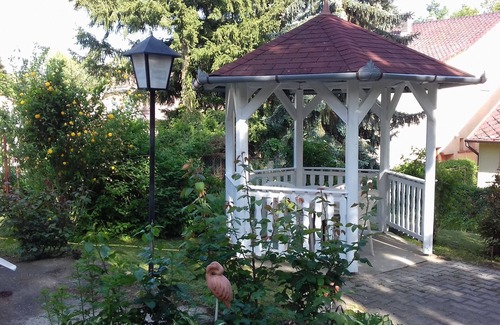 In the garden, a variety of seating areas and a covered pavilion are provided for you. The many roses, medicinal and herbal plants ensure good balsamic air.