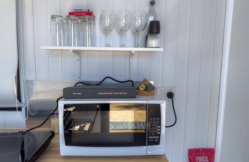 A cozy 139-square-foot tiny home, just a 2-hour drive from Perth, nestled among wattle trees and featuring all the modern comforts of home. Complete with easy access to water, split air conditioning, a kitchenette, cooking equipment, and excellent bathroom facilities. These amenities include an eco-friendly cassette toilet with a removable waste holding tank, a hand basin, and a gas-heated shower for your use.