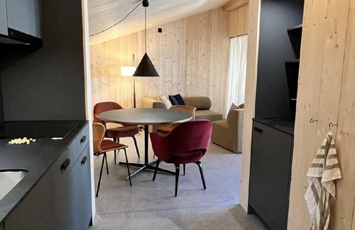 The charming flat, newly built in 2023, is located in the extension of the over 100-year-old house in the centre of Ftan. The high-quality furnished flat is ideal for a couple looking for a relaxing mountain holiday in the magical Lower Engadine mountains. A living and dining room with open-plan kitchen, including dishwasher, Nespresso machine, Internet WLAN and sofa, invite you to linger. The spacious and light-flooded bedroom with large double bed and sofa is the perfect place to relax. There is a ski room on the ground floor. The washing machine/tumbler in the cellar can be shared. The car can be parked at the crossroads next to the house or in one of the many public car parks. A socket for an electric car is available on request, please enquire with the landlord in advance.