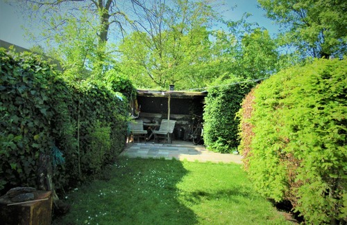 Enclosed green garden (68 m2, of which 21 m2 terrace) facing south with all-day sun; terrace attached to cottage. In addition, covered seating area.