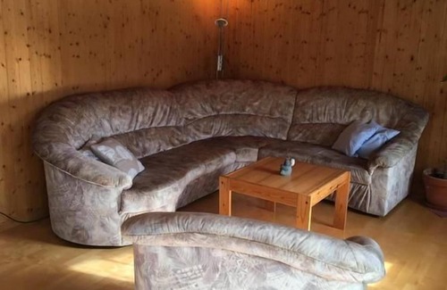 Spacious, partially renovated 3 1/2-room apartment on the 1st floor of our three-family chalet (built 1972/ apartment partially renovated 2003) in a central location with beautiful views of the mountains. The apartment has a bright, spacious kitchen with dining table, electric hob and oven are new; a friendly living room with upholstery, a bed (when occupied by 5 people), Swisscom TV; two bedrooms with 2 beds each and a cupboard each; a bathroom with shower in the bathtub, washbasin and toilet; balcony; garden seating area for sharing with grill, table tennis table and sandbox; as well as a parking lot next to the house. There is a public playground for children in the immediate vicinity. (total living space approx. 80m2). The landlord lives in the same house and is usually personally reachable.