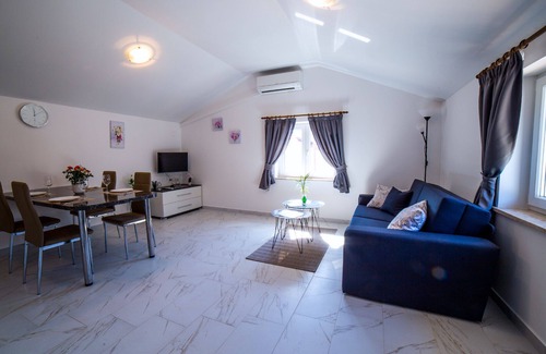 This cozy but modern 53 square meter apartment comes with kitchen,living room, one bedroom and bathroom, . We are big fans of light, big and open spaces, which is why apartment Podini offers spacious central living room and kitchen with modern appliances where you can spend quality time with your fellow travelers or your family, and enjoy the beautiful weather in an untouched nature in Croatian countryside.