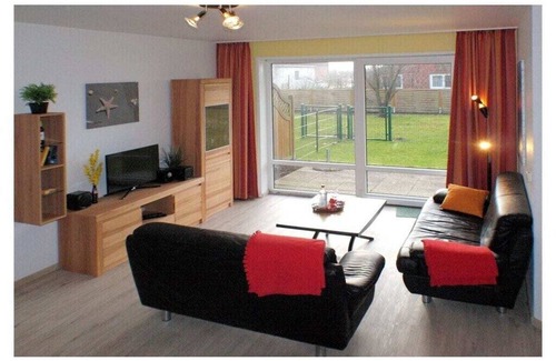 The Seestern holiday apartment is the perfect starting point for your Fehmarn getaway. It offers 55 square meters of space for up to 5 guests (maximum 4 adults). The apartment features 2 bedrooms and a spacious living area with an open kitchen. The renovated shower room has a window. The wonderful, fenced-in sun terrace is ideal for those with dogs or small children to enjoy a relaxing holiday; a barbecue grill is available for use. Parking, a large communal garden with a lawn, and children's play equipment, including a playhouse with a slide, are located directly on the property. Surfers can store their equipment in the garden. The house comprises a total of 4 residential units.