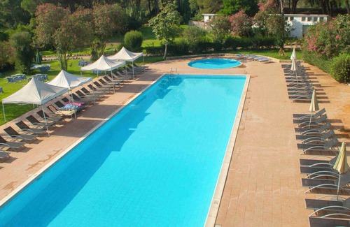 The holiday apartment is furnished in a modern and rustic style. The property is located in a residence. Available for use: garden furniture.Holiday resort58 accommodations, lobby, reception (24 hour service), 4 restaurants, pizzeria, bar, coffee shop, pool bar, internet (WLAN), boutique and hair dresser. Wi-Fi in the common areas. Conference centre; Infopoint; CUSTOMERS MUST REGISTER THE ARRIVAL TIME, OTHERWISE WE CANNOT GIVE A WELCOME GUARANTEE LocationArborea. The holiday apartement is located in a residence, on a 40000 sqm garden plot with meadow and trees. The residence is located in a 40-hectare park, just 300 metres from the sea Access is directly from the main road (asphalted). Parking (for 1 car) is available on the property. Specialair conditioning.Facilities: children's toys and internet access (WLAN). TV reception takes place via electric wire. TV channels only in local language.For your safety, the accommodation is equipped with CO2 detector, smoke detector and fire extinguisher. PoolAll pools are available for shared use. Outdoor pool (usable from mid June to mid September, 25 m x 15 m, depth 1.80 m). Two swimming pools are open from 10 a.m. to 6 p.m. LeisureIn the complex: table tennis, table football and bike rental. Animation for children from 5 years. Adult animation. Fitness area; health center; horse riding center; private beach with sun loungers and umbrellas, while stocks last. Dogsallowed, EUR 25.00/pet per day. DistancesShopping 5 km, restaurant 5 km, town center 5 km. For a relaxing holiday, a car is necessary. doctor, pharmacy, bank each 5 km in Arborea. airport in Cagliari 72 km. DivisionHoliday apartment, 1 floor, 2 rooms (including 1 bedroom), 40 sqm, in total 4 beds (including 2 additional beds). RoomThe entrance to your holiday apartment is at ground level and leads directly into the living & bedroom. Bedroom with 1 double bed. Living/bedroom with 2 additional beds on couch/sofa, TV and dining area (4 seats). Cooking nook in the living & bedroom with gas stove (2 flames) and fridge. Bathroom with shower, 1 washbasin, WC, bidet and hairdryer. Credit cardsVisa, MasterCard. Terms of lease and pricesIncluded in the priceinternet access, air conditioning, parking place, gas, water, final cleaning, local tax (under 12 years), bed linen, hand towels, Club card (under 5 years), Wireless Internet access. Side costs-Costs on the spot:/Obligatory:electricity 8 € all inclusive per day. Club card 10 € per person per day. local tax by local tariff (if charged).Deposit:EUR 100,-/object